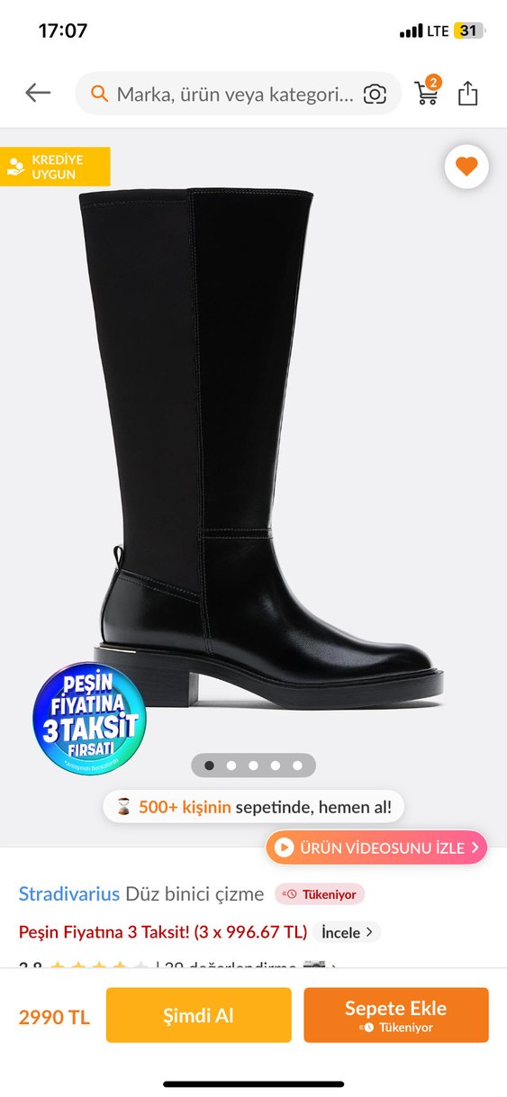 Ayağıma büyük olduğu için satıyorum. Toplam 4 kez giyildi.Kutusuyla gönderilir