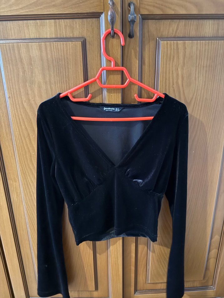V yaka ve uzun kollu, siyah kadife bluz. 1 kere giyildi.