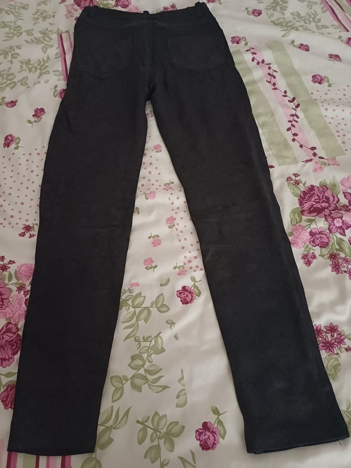 Kadınlar için düğmeli, siyah kumaş pantolon. Sentetik kumaştan, normal boy ve sıkı kesim, günlük kullanıma uygun. temiz kullanılmıştır herhangi bir sorunu yoktur