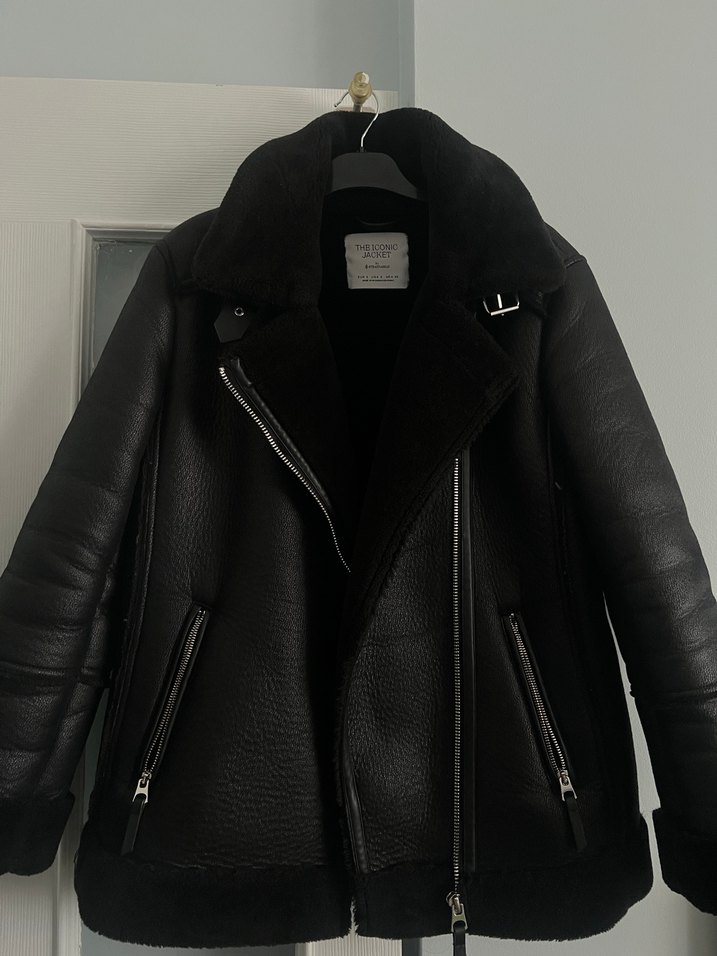 Stradivarius Siyah Kürklü Deri Biker Ceket
