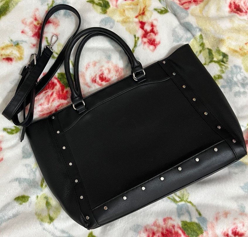 Stradivarius Siyah Omuz Çantası Metal Detaylı Suni Deri, 32x26x10, Askısı Mevcuttur, Sıfır