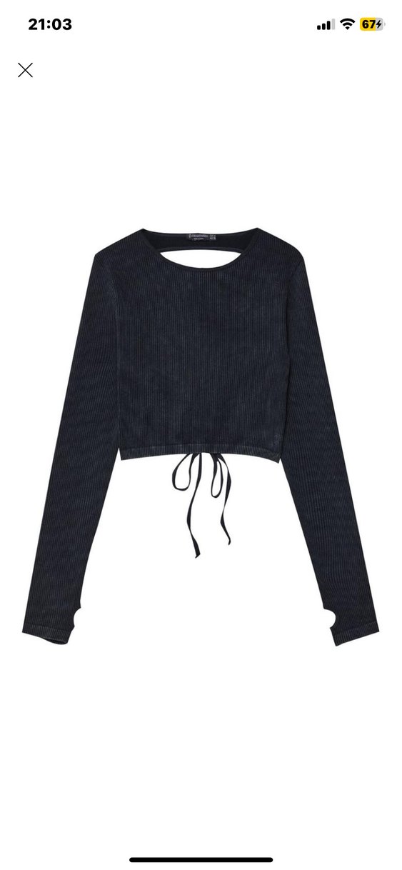 Stradivarius Siyah Örme Uzun Kollu Crop Top