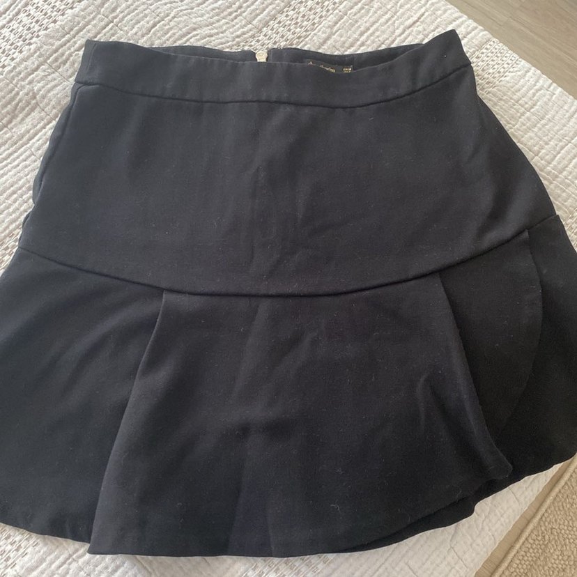 Siyah renkli, pilili ve vücuda oturan mini etek. Düz sentetik kumaştan üretilmiş, ofis ve sokak stiline uygun.