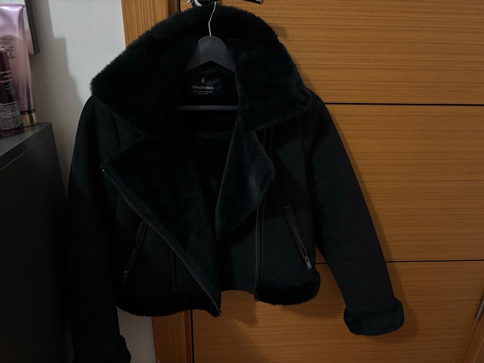 Stradivarius Siyah Süet Kürk Detaylı Ceket