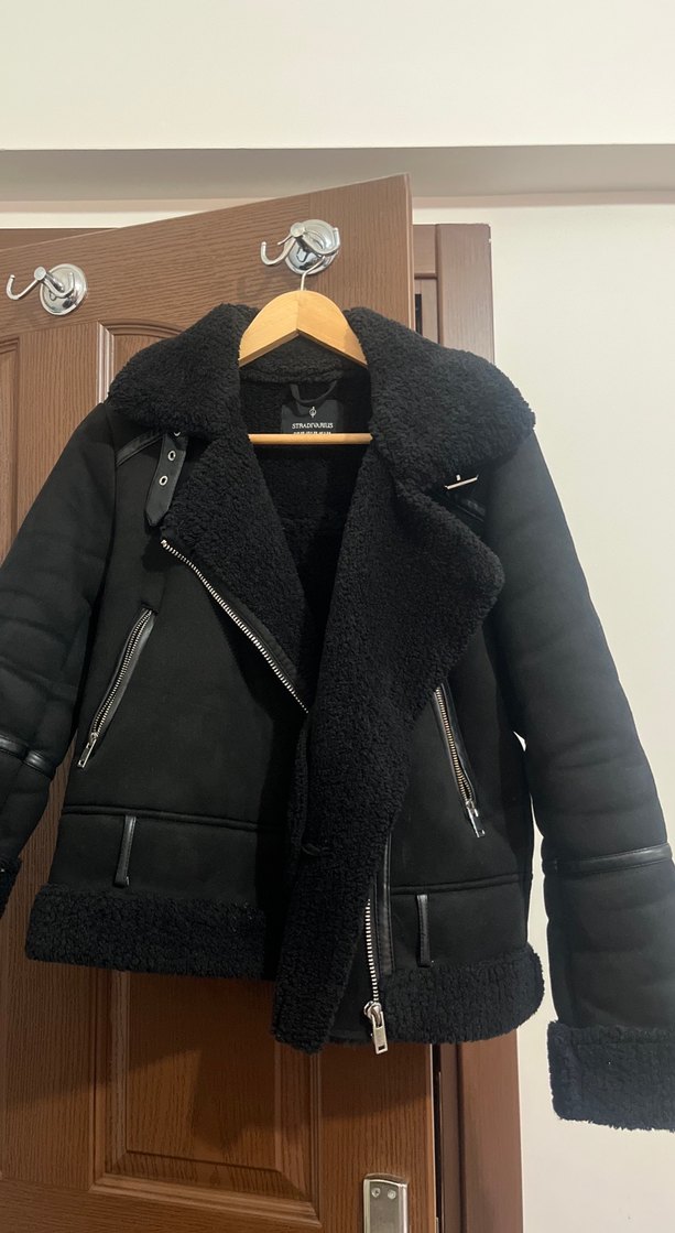 Stradivarius Siyah Süet Kürk Detaylı Kadın Ceket