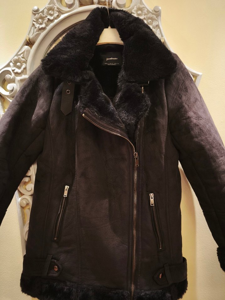 siyah süet biker ceket, kürklü rahat kesimiyle dikkat çekiyor. 1 kez kullanıldı asiri sıcak tutuyor kalçayı kapatır dışı süet içi kaliteli bir kürk