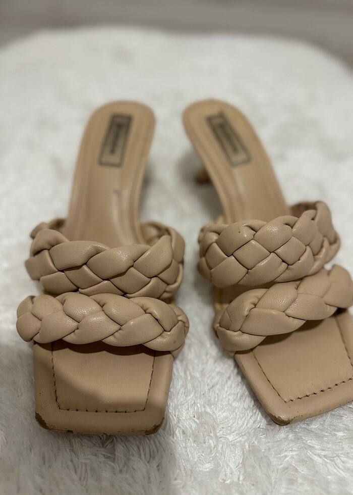 Yaklaşık 5 cm topuğu vardır çok yüksek değil ve rahat. İç kısımda ufak tefek defolar mevcut kullanıma engel değil