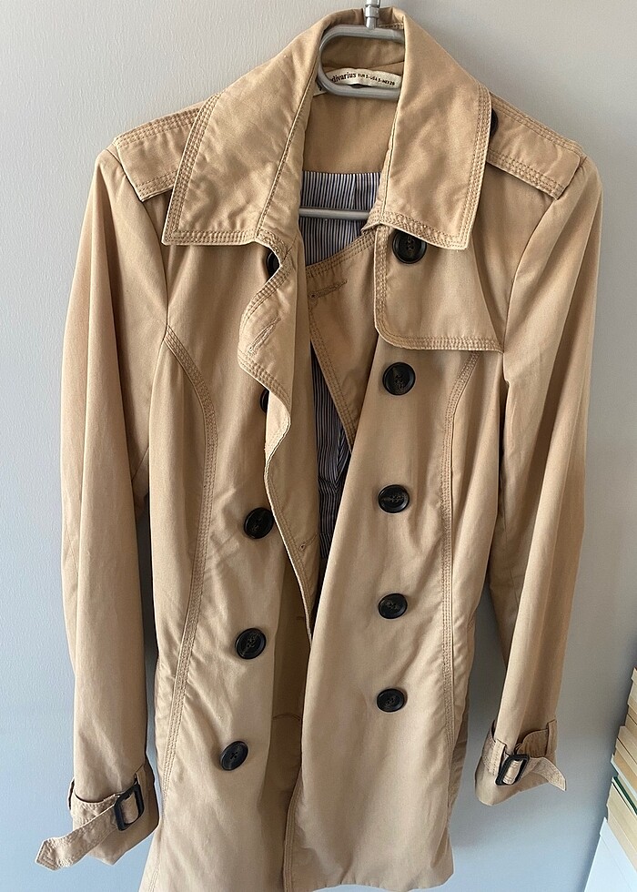 Çok az giydim. Sadece ceplerinin astarları delik onun dışında hiçbir kusuru yok müthiş bir trençkot