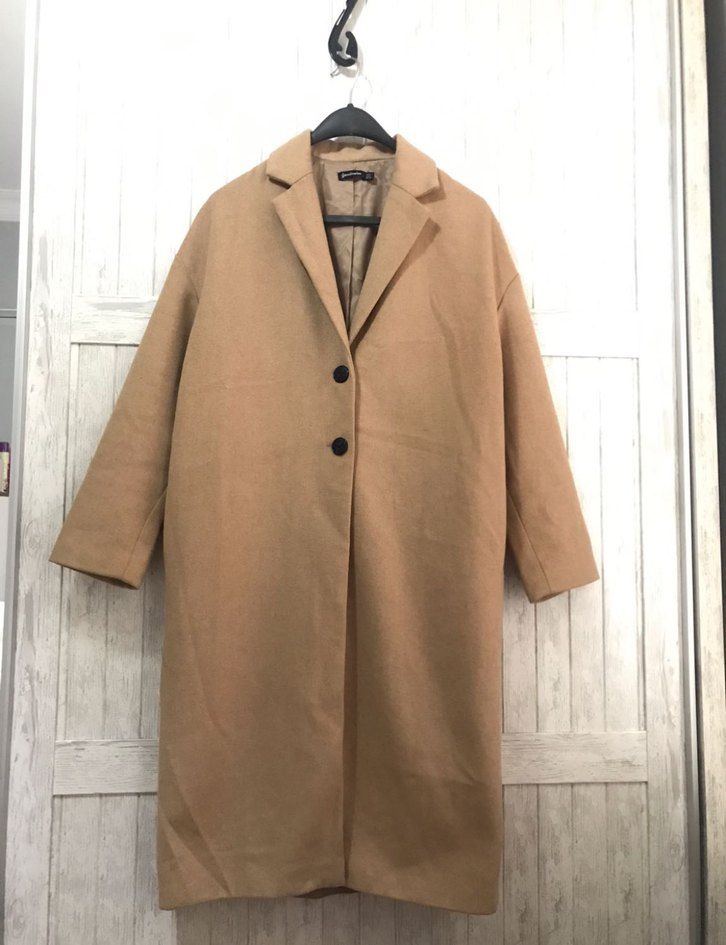 Camel renkli, uzun ve düz kesim kaban. Notlu yakası ve uzun kolları ile günlük kullanımı için uygundur. Rahat ve sıcak dokusu ile sade şıklık sunar.