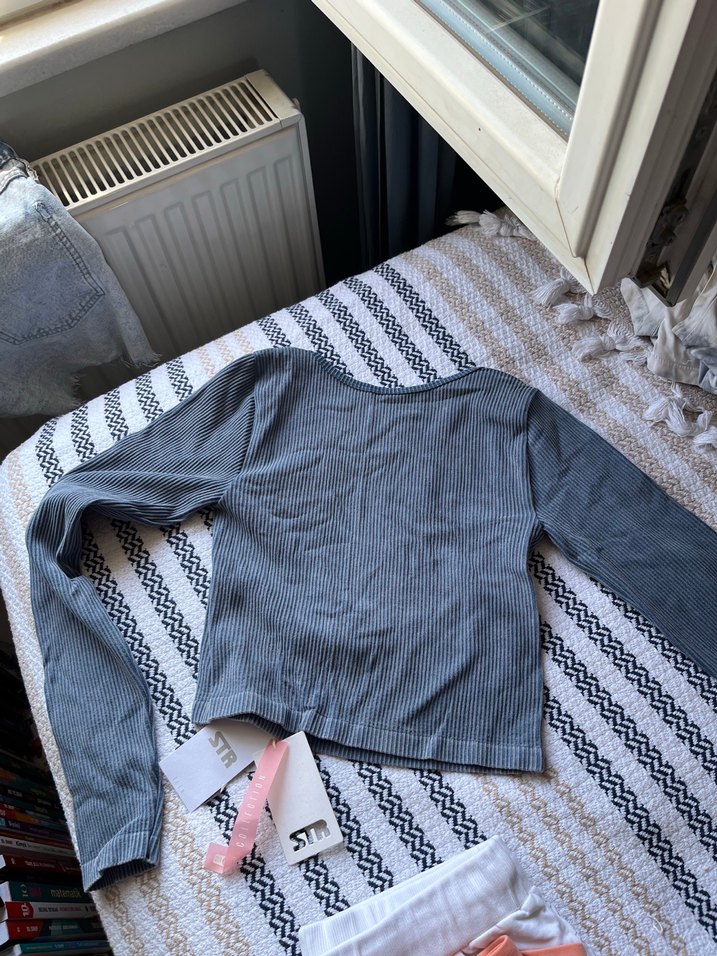 Ürün sıfır etiketli S beden hafif soluk mavi sırtı açık bluz vücudu sarıyor üste çok şık duruyor