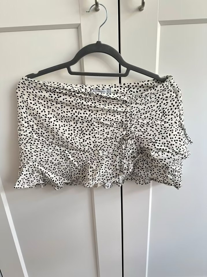 Stradivarius Volanlı Beyaz Zebra Desenli Mini Etek