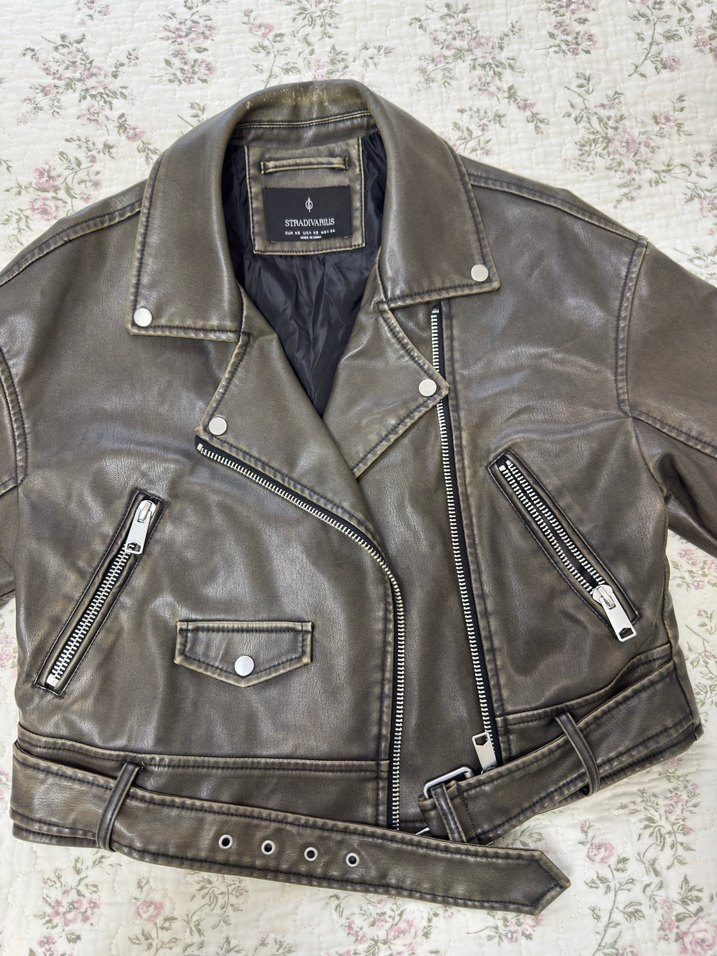 Stradivarius yeşil bağlamalı deri ceket