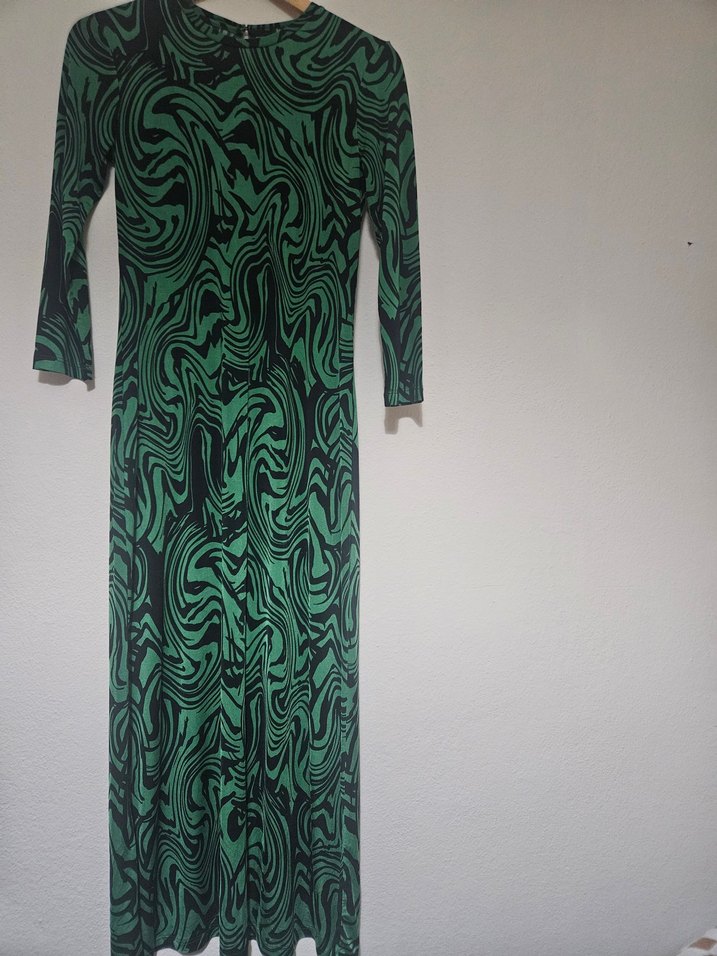 Stradivarius Yeşil Uzun Kol Desenli Uzun Elbise