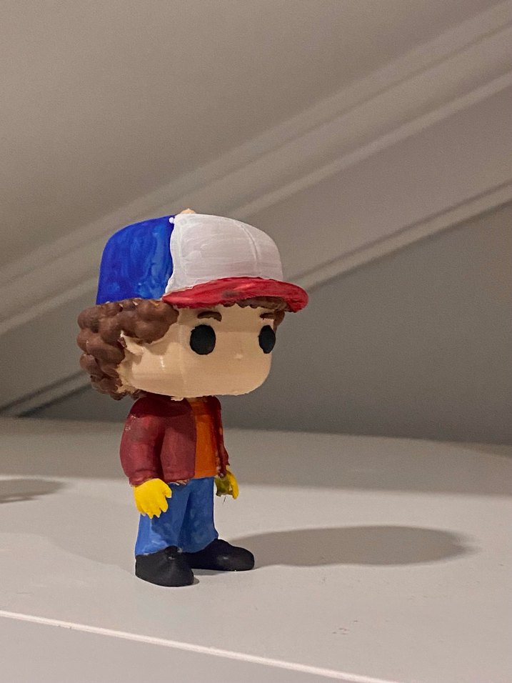 Stranger Things Dustin karakterinden esinlenilmiş figürdür. 8.5 cm boyunda, 3D baskı makinesinden basılmış figürü, akrilik boya ile renklendiriyoruz. Ürün gönderimden önce son kontrollerden geçerken, boyası yenileniyor.