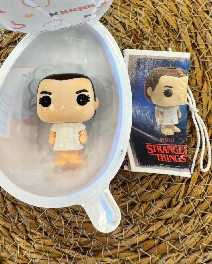 Stranger Things temalı, pastel bej renkli aksiyon figürü, basit kıyafetli bir karakteri içerir ve koruyucu kutusunda saklanır. Yanında temalı kart ve ip bulunur.