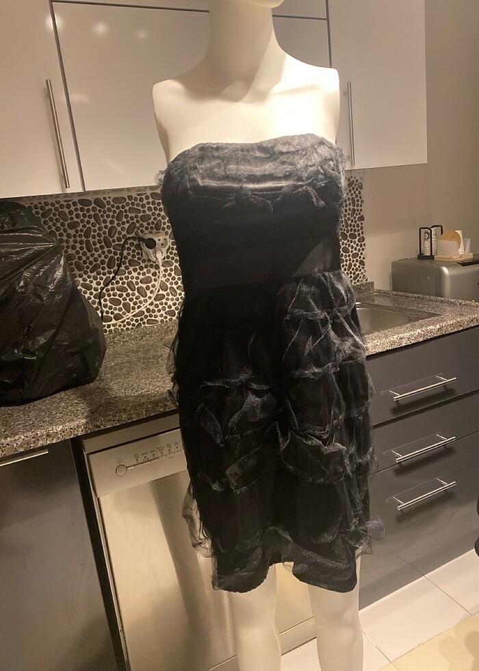 Eğlenceli ve seksi kişiliğinizi yansıtan elbise Straplezinde silikon kaymaz var Gövdesi saten ve tül detaylı Giyilmedi
