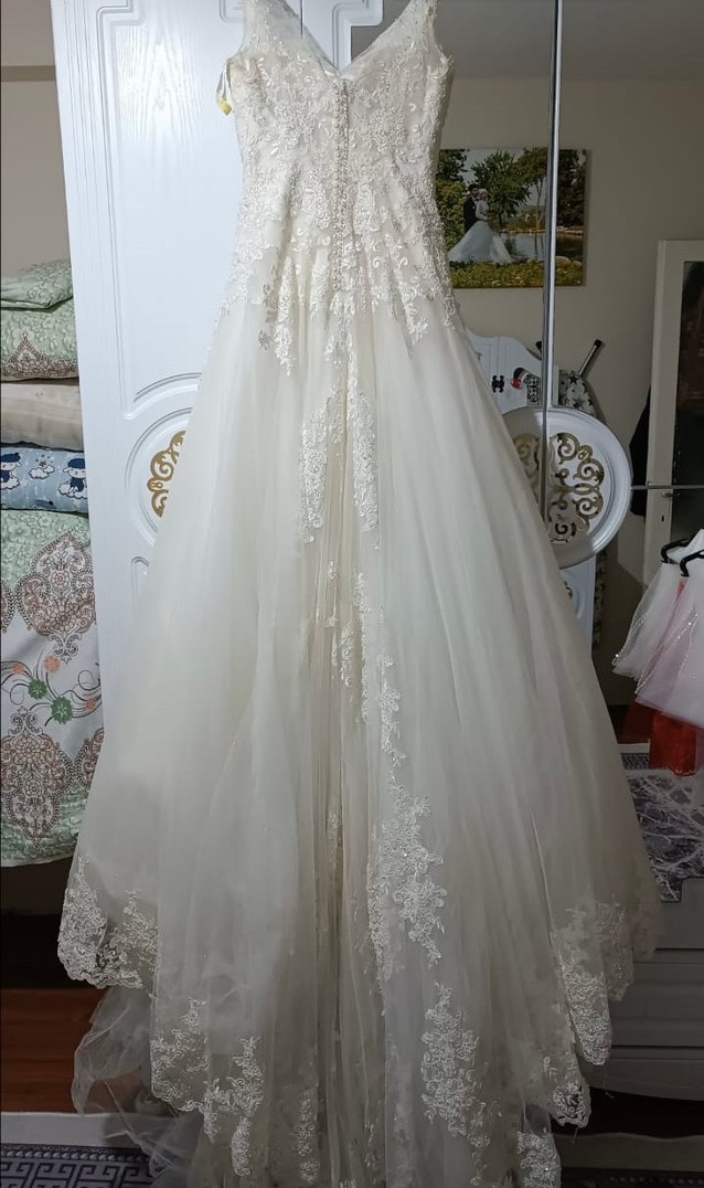 Straplez A Kesim Beyaz Uzun Gelinlik