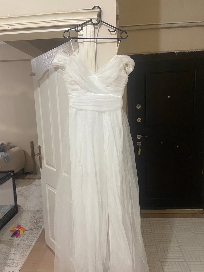 Straplez Beyaz A Kesim Uzun elbise