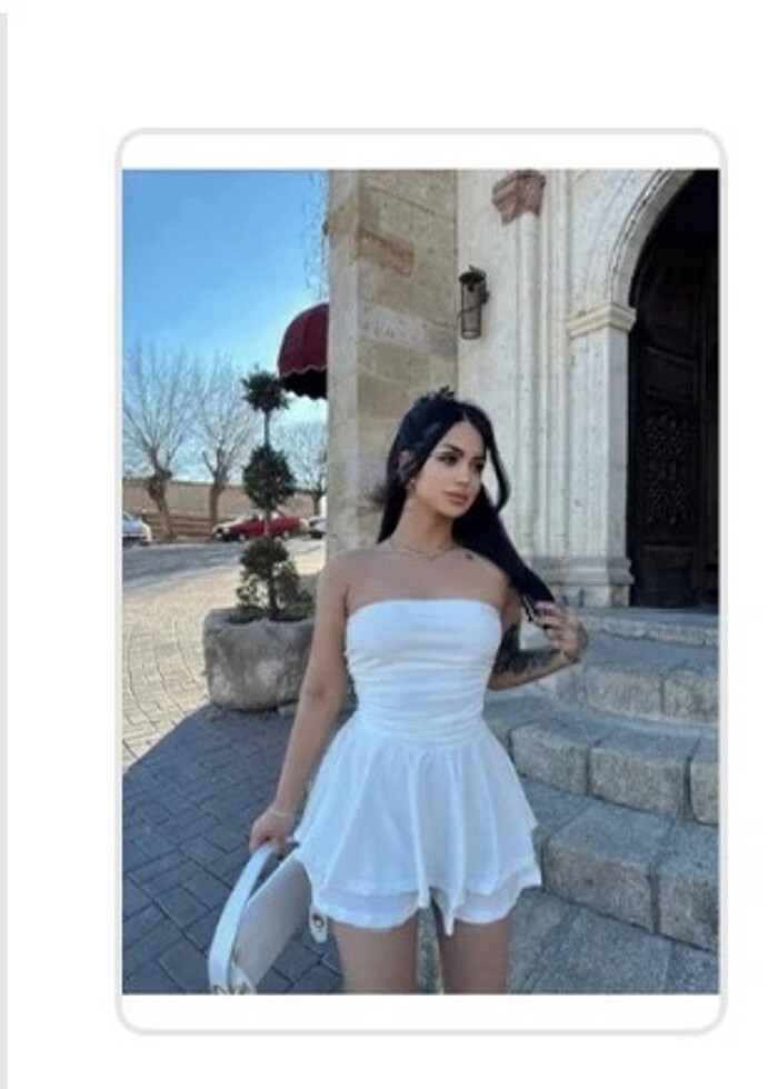 straplez beyaz şort etekli elbise