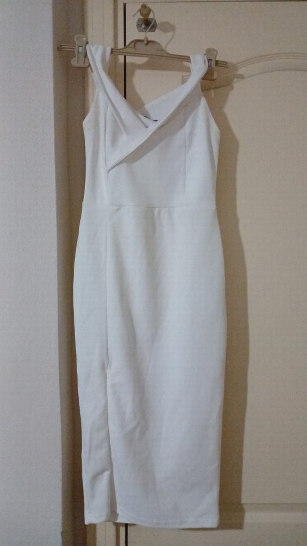 Keten kumaştan, beyaz kalem elbise. Uzun boy ve , minimalist şık elbise. ✨S BEDEN, TEMİZDİR.