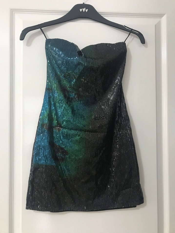 Straplez Çok Renkli Midi Elbise