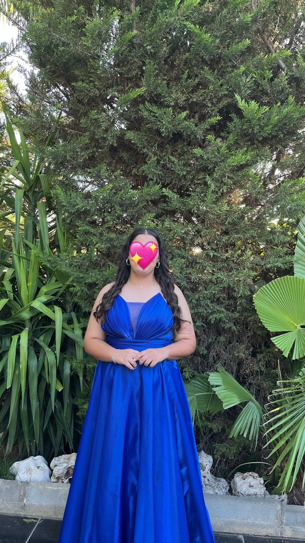 Cesur parti görünümleri için bağlama desenli, askılı kolları ve drapeli detayları olan straplez, fitted kesim mavi midi abiye elbise.