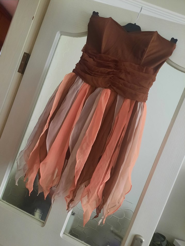 Sıfır hiç kullanılmadı.İpekyol marka dar kesim bohem açık kahve tonlarında gece elbisesi, straplez drapeli yaka, pastel bej tonlarda kat kat şifon bağlamalı südyen destekli hafif midi etek ile dikkat çeker.Parti için uygun şık abiye elbise.fotolarda gösterdiğim gibi bağcıklar yön değiştiretek 2 model olarak kullanılır.milenyum çağının renkli kültürünü yansıtan ve cool bir görüntü altında nostaljik hava yakalamak isteyenlere.kapattığımız mağazadan benzeri ve devamı yoktur.etnik bohem ve otantik tarz görüntü sunar.