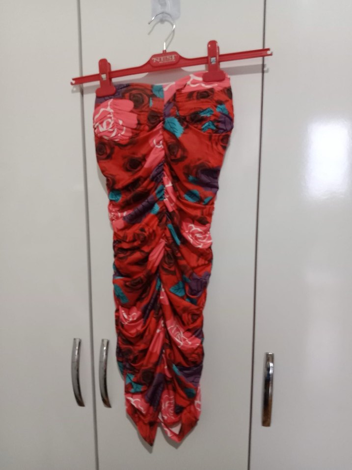 Askılı, drapeli uzun kadın elbisesi, renkli batik desenli ve straplez yakalıdır. Parti ve sokak modasına uygun, vücuda oturan tasarıma sahiptir.