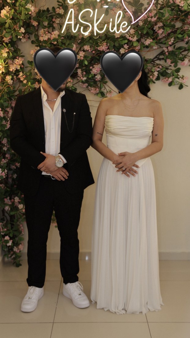 Straplez ekru nişan elbisesi