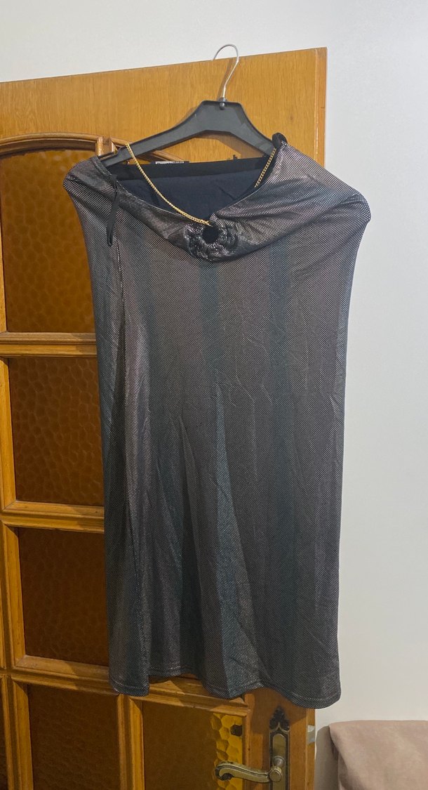 Gri renkte, likra kumaştan, drapeli ve bol kesim uzun elbise, Gotik tarzıyla uyumlu, abiye elbise