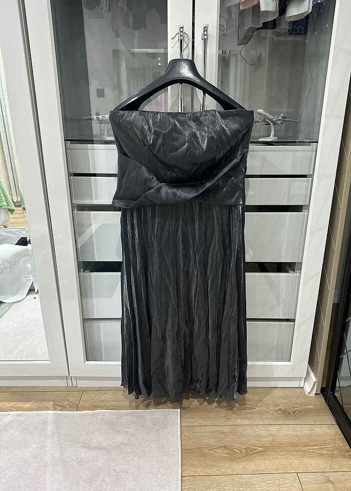 Hiç kullanılmadı parlak gri elbise