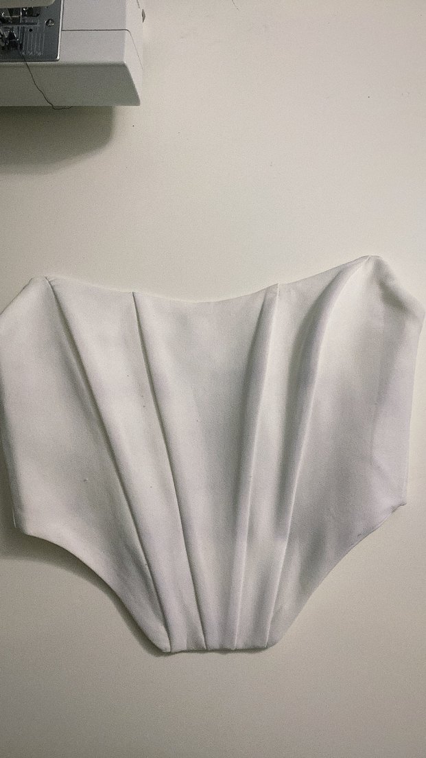 Beyaz, straplez ve pilili tasarıma sahip bu büstiyer, modern ve gotik bir görünüm sunar.Dik durması için içinde aparatları vardır.36-38 uyumludur.