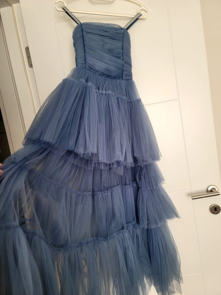 Straplez Gri Mavi Uzun Hamile Abiye Elbise