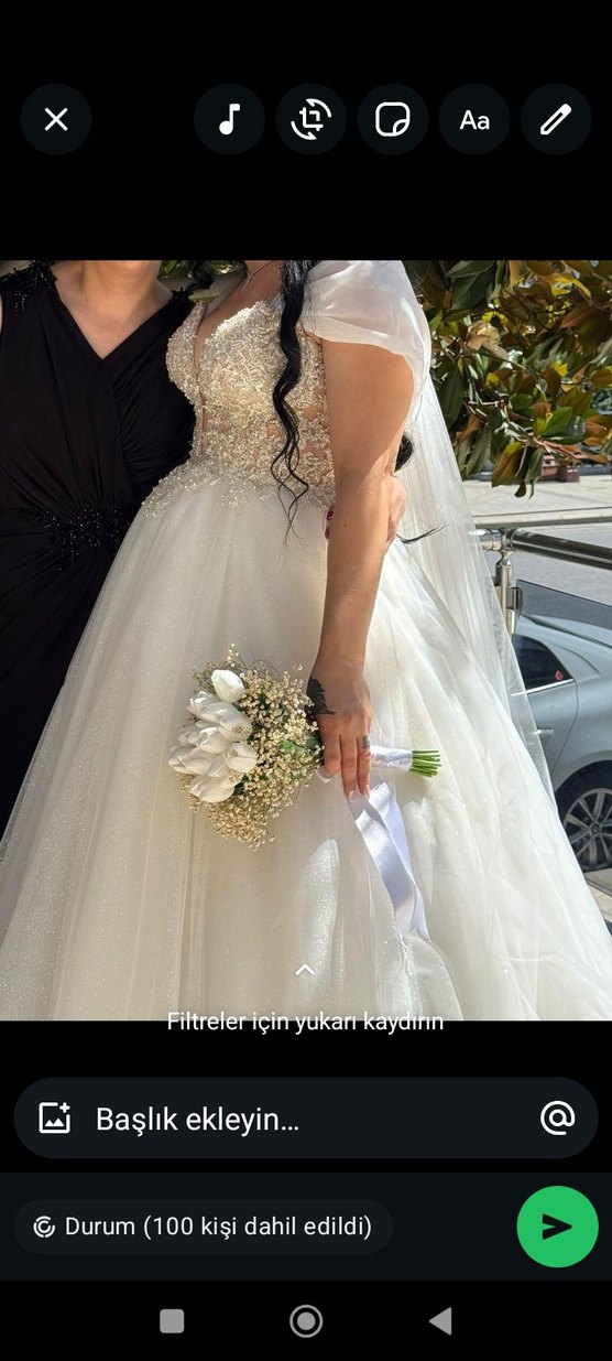 İnce askılı, straplez yakalı, uzun A kesim beyaz gelinlik, klasik zarafet ve modern ışıltıyı bir araya getirir. sorunsuz ön dekolte kısmı kapanabiliyor. yepyeni tertemiz
