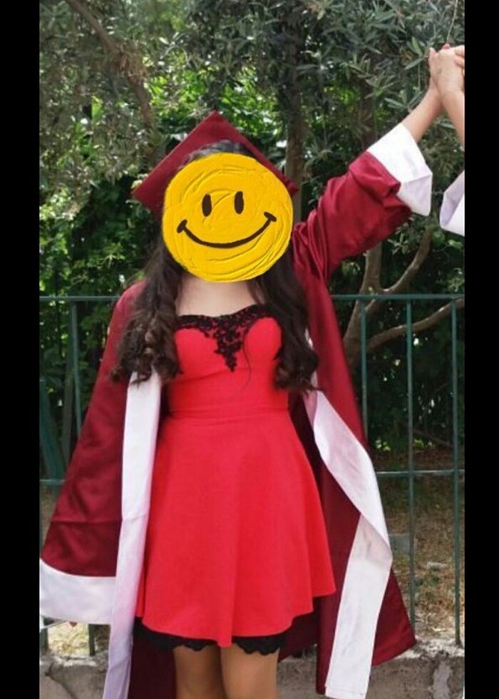Ürün rengi kırmızı/nar çiçeğidir. Göğüs kısmında ve etek bitiş kısmında dantel detayları var mezuniyetimde giydim.Temiz ve bir kusuru yoktur