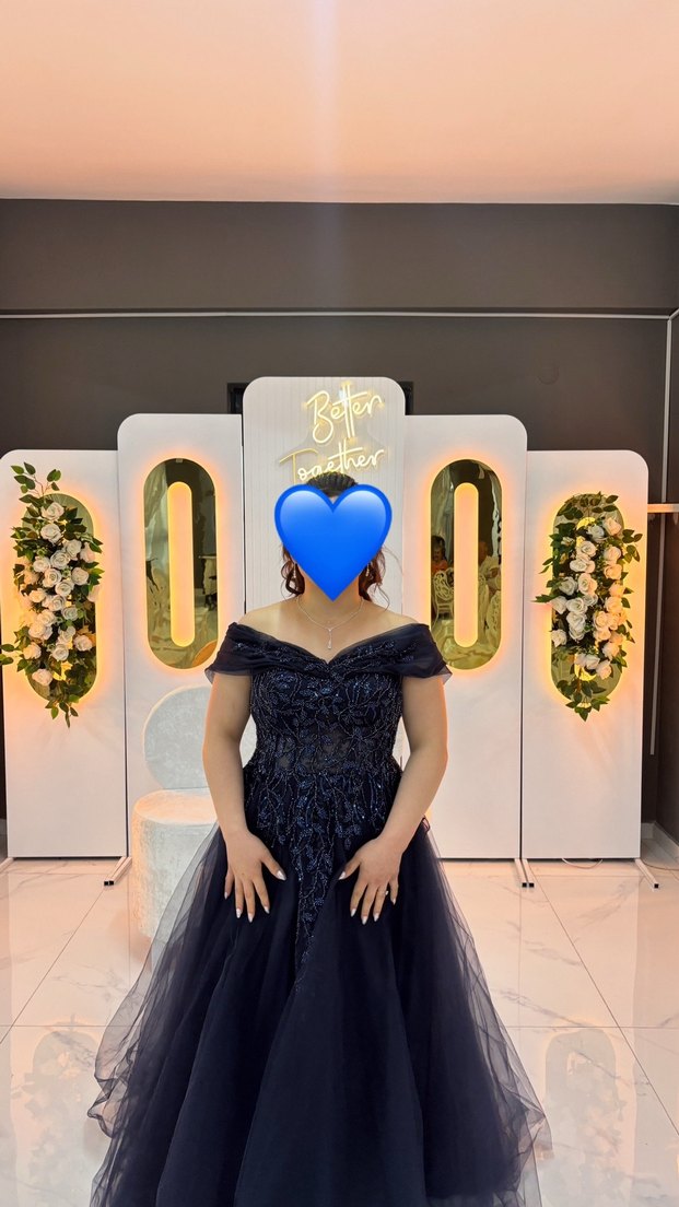 Straplez Koyu Mavi Gotik Nişan Elbisesi