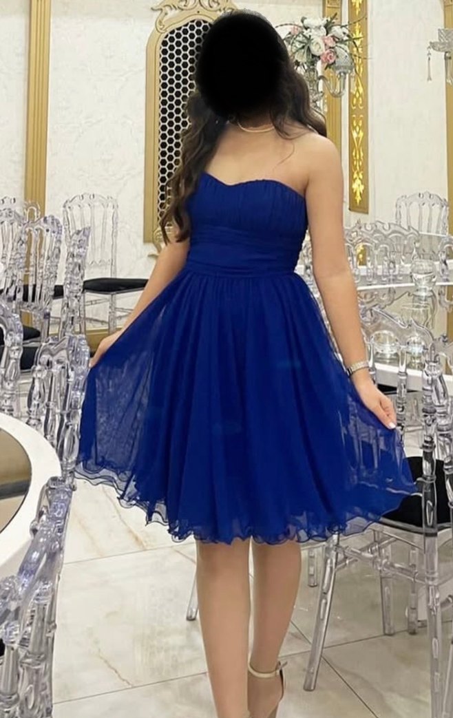 Straplez Lacivert Midi Kadın Abiye Elbise