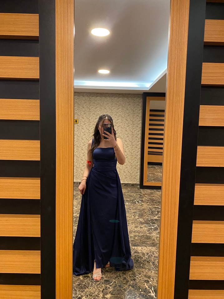 Straplez Lacivert Uzun Abiye Elbise
