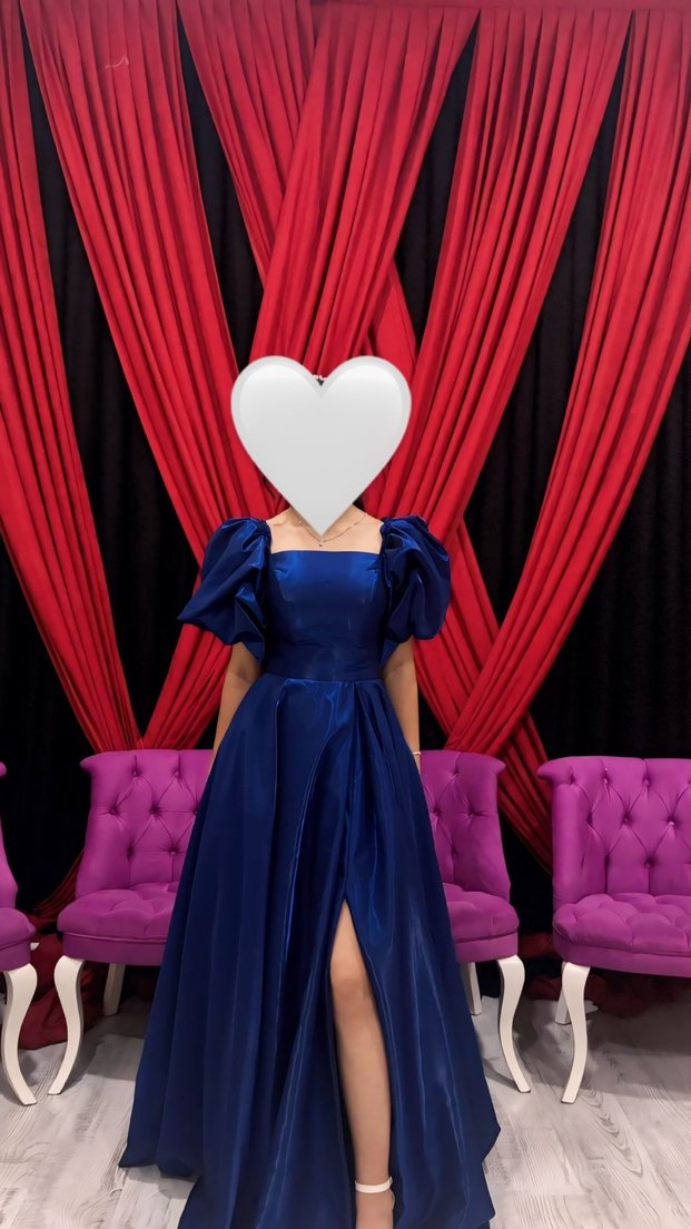 V yaka, drapeli ve straplez kollu, uzun lacivert kadın abiye. Gotik pop kültür tarzı, parti için uygun. ✨
