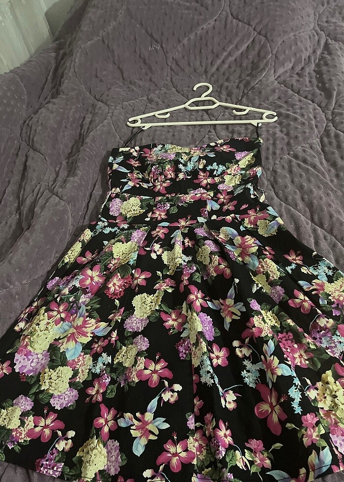 Çiçek desenli straplez elbise