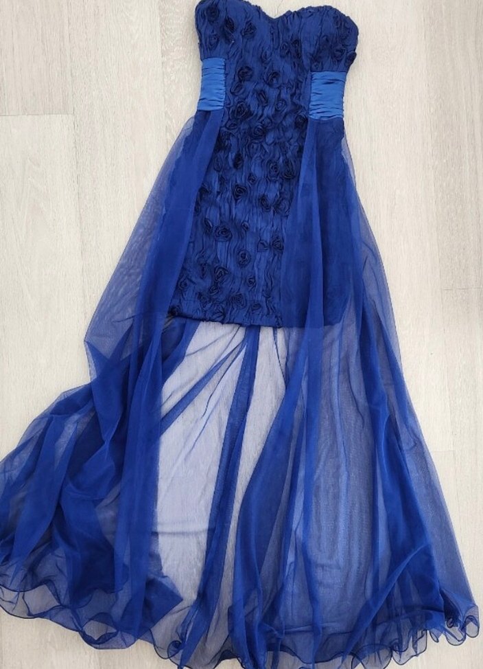 Straplez Saks mavi Nişan/Balo/Mezuniyet Abiye Elbise