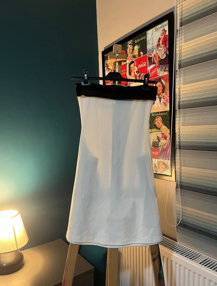Straplez siyah beyaz elbise