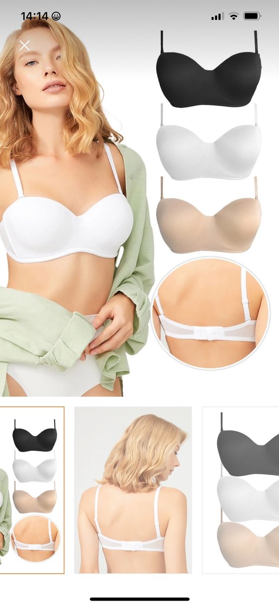 İki adet sıfır kullanılmamış straplez sütyen 85c beden siyah ve beyaz desteksiz