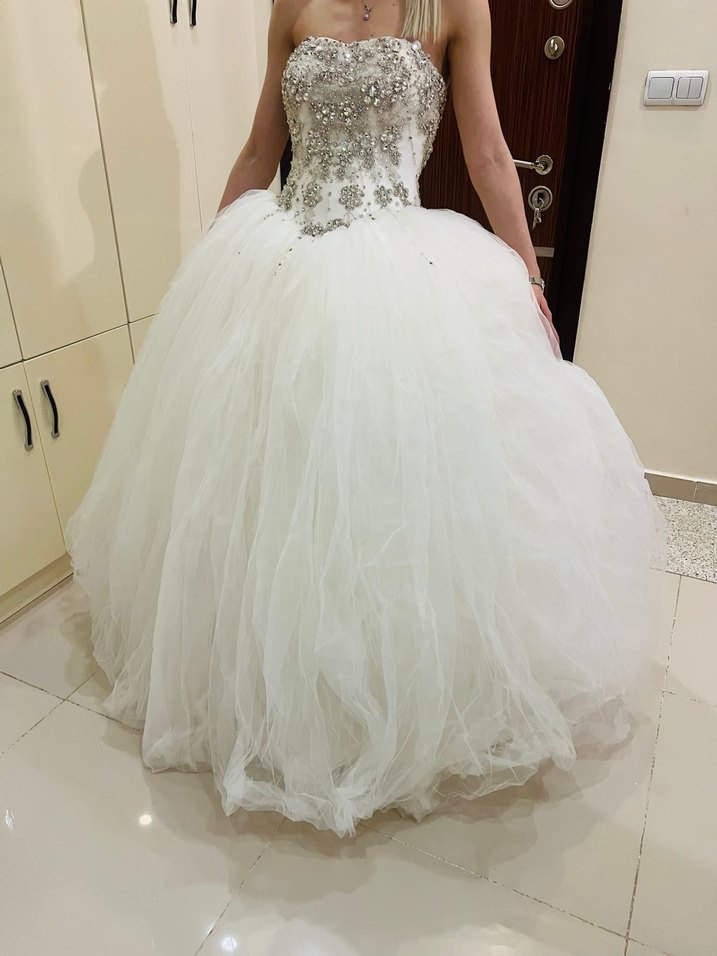 Taş işlemeli straplez, vücuda oturan prenses model uzun gelinlik, modern ve klasik şıklığı bir arada sunar. Hiçbir kusuru yoktur dolapta yer açmak için satıyorum
