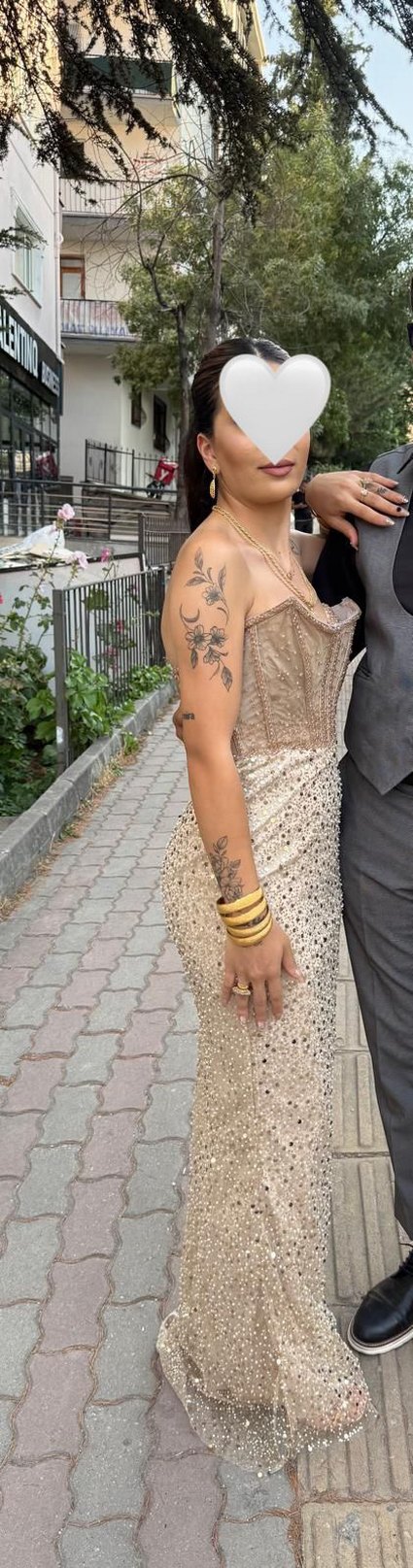 Straplez,taşlı ve pullu abiye