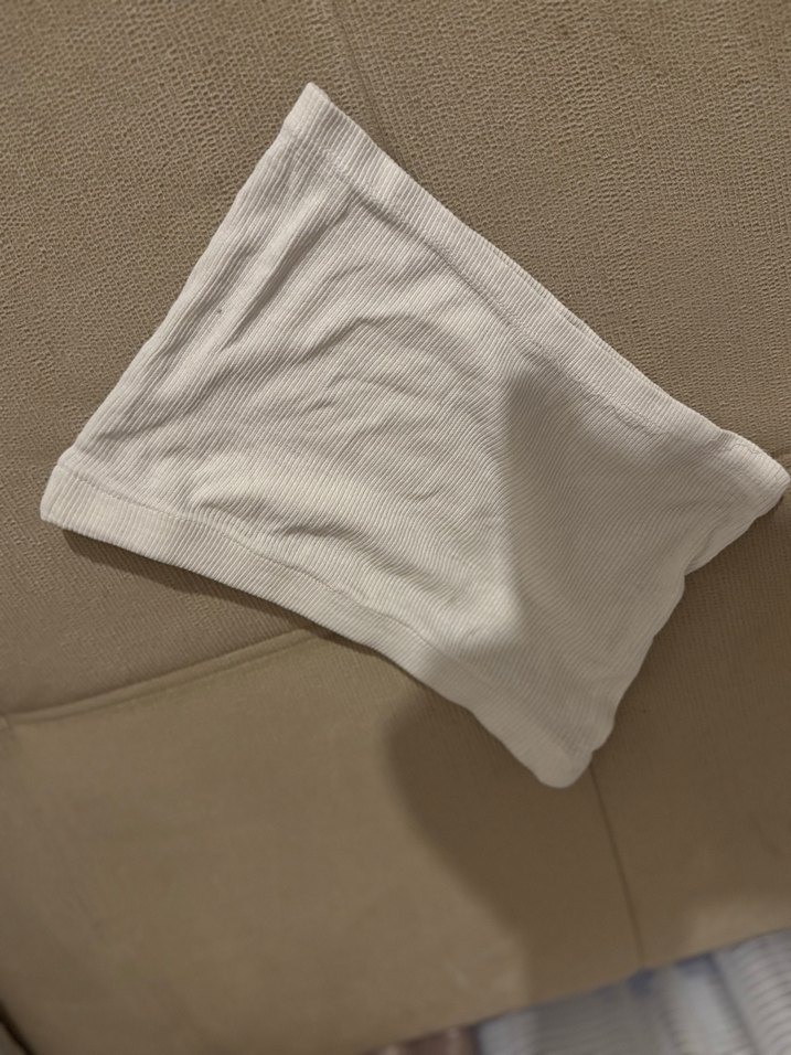Yumuşak dokulu, düz beyaz renkte ve gri tonlarında sade bir straplez. ️