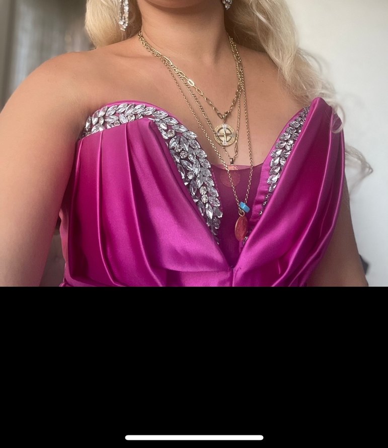 Straplez yakalı taşlı uzun pembe abiye elbise, bohem tarzı ve vücuda oturan kesimiyle göz alıcı bir seçenek. ✨ 1 kere kardeşimin düğününde giyindim sıfırdan farksız