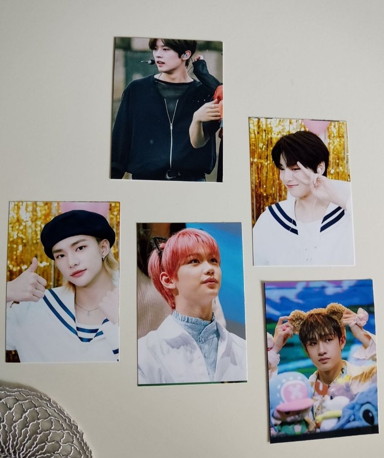 Stray Kids baskı fotoğraf seti – 5 adet, 8×11 cm. Temiz, sorunsuz. Set olarak satılır.