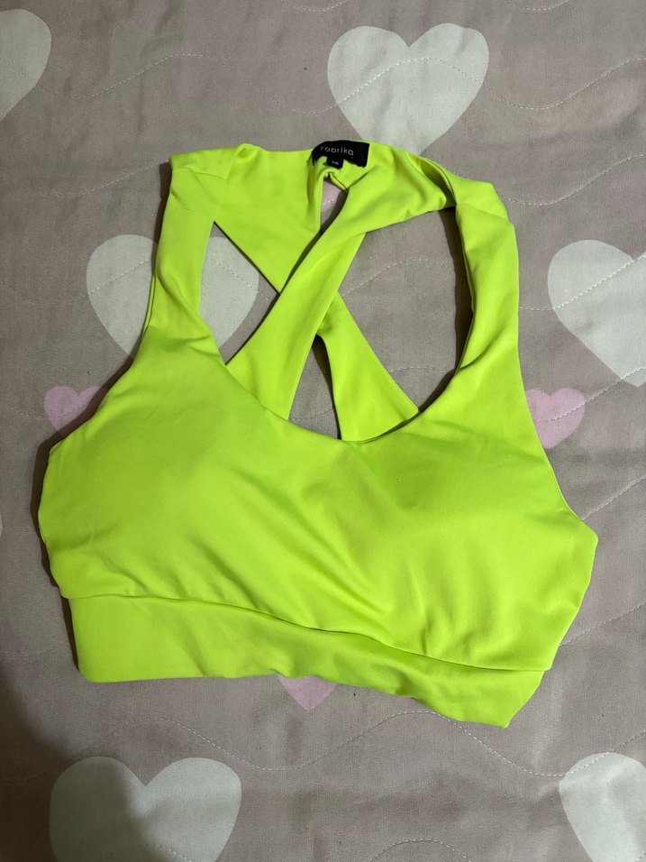 Renkli spor sütyeni, street wear tarzında ve normal uzunlukta. Düz, desensiz kumaştan yapılmıştır ve athleisure için uygundur. Ufak bir defosu var onu da fotoğrafta belirttim zaten çok küçük bir söküğü var iğne iplikle halledilicek şekilde zaten . Bedeni XS fakat S bedene uyar