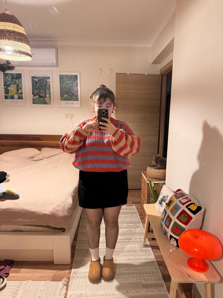 %100 pamuklu harika bir kazak Tüylenme fark etmedim ancak ufak tefek yerlerinde olabilir Boyu standartla crop arasında Standart beden